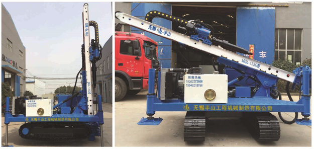 M G L-13 5 D型履帶式深基坑錨固鉆機(jī)是無(wú)錫半山工程機(jī)械制造有限公司根據(jù)國(guó)內(nèi)地鐵、高層建筑、機(jī)場(chǎng)、 地源熱泵及其它深基坑進(jìn)行描固、旋噴、降水所開發(fā)的效率高的鉆機(jī)。